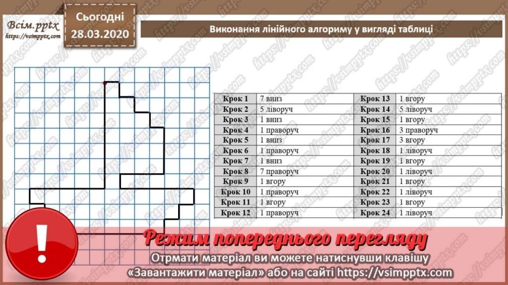 спробуйте виконати послідовно всі кроки у таблиці, а в кінці порівняти свій результат із поданим на маюнку.